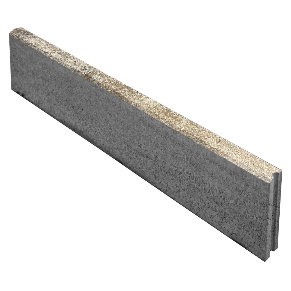 Klasszikus stílusú kerti szegély melírozott grafit-terra felbeton színezéssel, kvarc kopóréteggel, kerti utak, járdák, kisebb autóforgalmú felületek megtámasztására, határolására, lezárására.